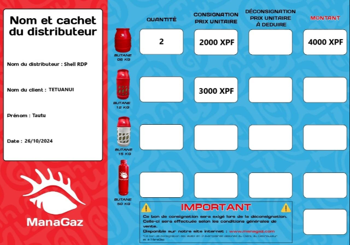 ManaGaz est propriétaire des bouteilles contenant le gaz que vous consommez. Les bouteilles et qui sont prêtées à l'utilisateur. Cela signifie qu’il existe un système de consigne.